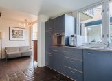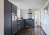 De open keuken bevindt zich aan de achterzijde van de woning (in de uitbouw) en is voorzien van een koelkast, combi-oven/magnetron 4-pits gasfornuis en RVS afzuigkap. Via de keuken is de bijkeuken te bereiken, voorzien van wasmachine- en drogeraansluiting, CV-ketel en deur naar de achtertuin.