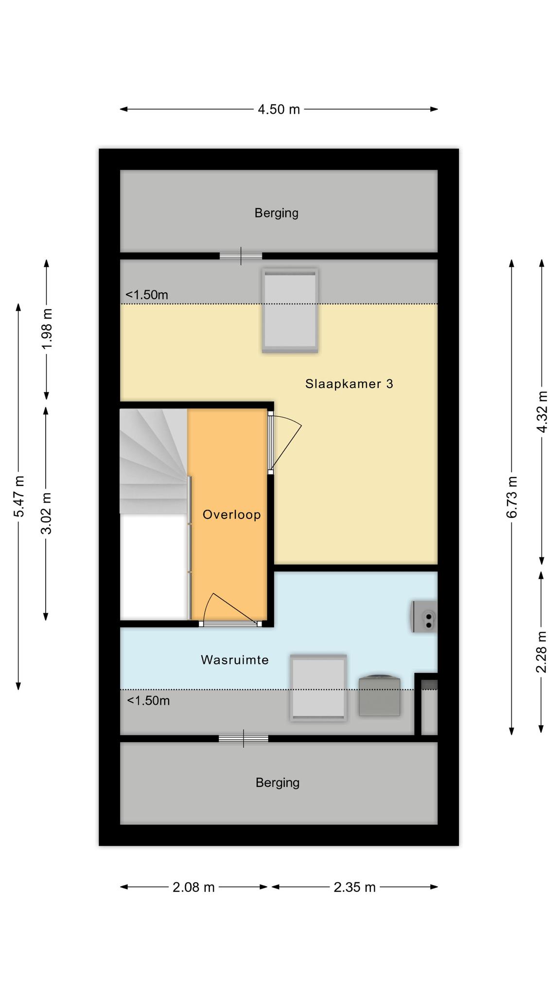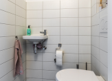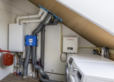 De wasruimte ligt aan de voorzijde van de woning, hier bevindt zich de wasmachine- en drogeraansluiting, CV-combiketel en de omvormer t.b.v. de zonnepanelen.