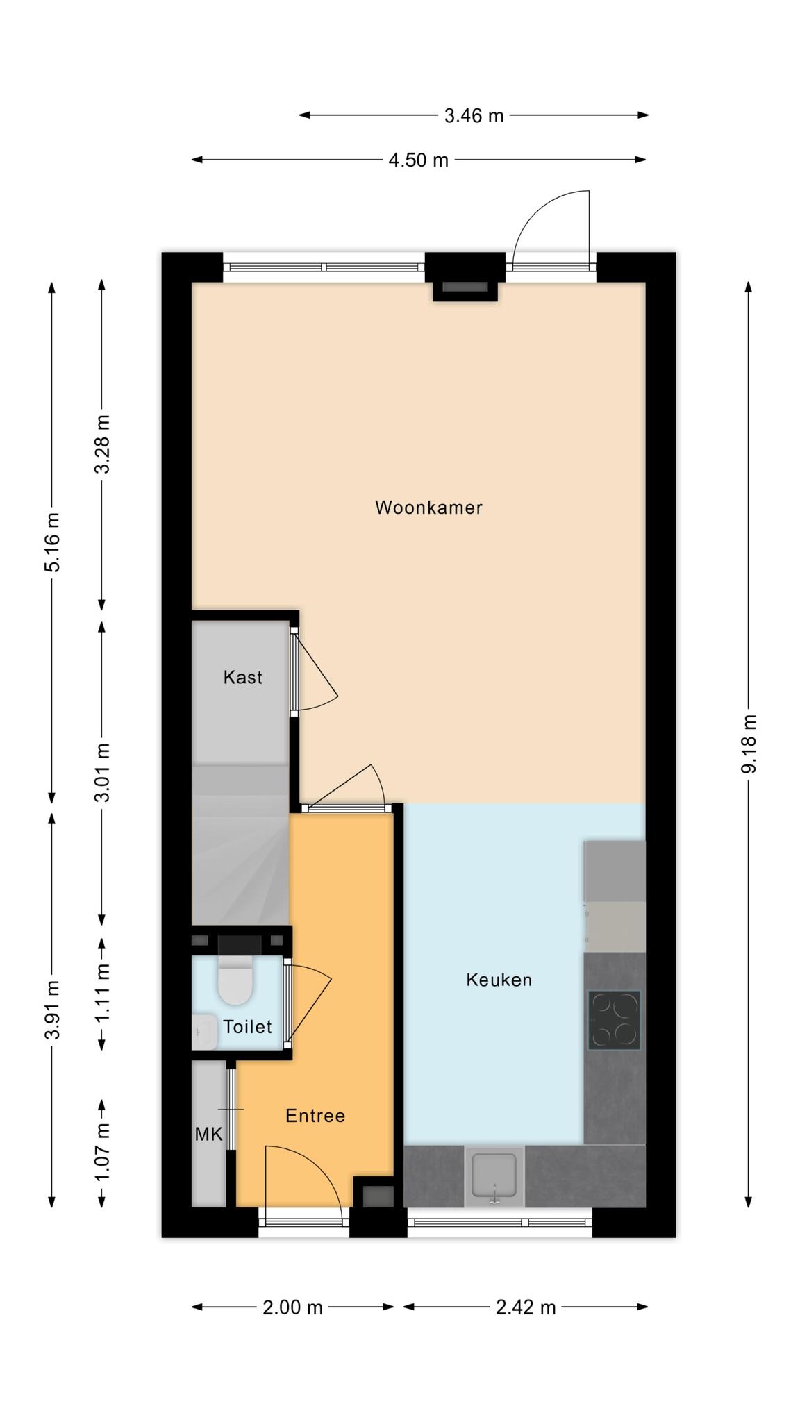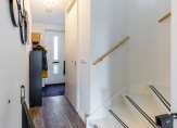 Entree, hal met meterkast, garderoberuimte, hangend toilet met fonteintje, trap naar 1e verdieping en toegang tot de woonkamer.