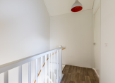 Vaste trap naar voorzolder met toegang tot een slaapkamer en een wasruimte.