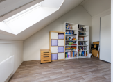 Slaapkamer III met hoge nok is voorzien van een dakraam en veel bergruimte achter de knieschotten.