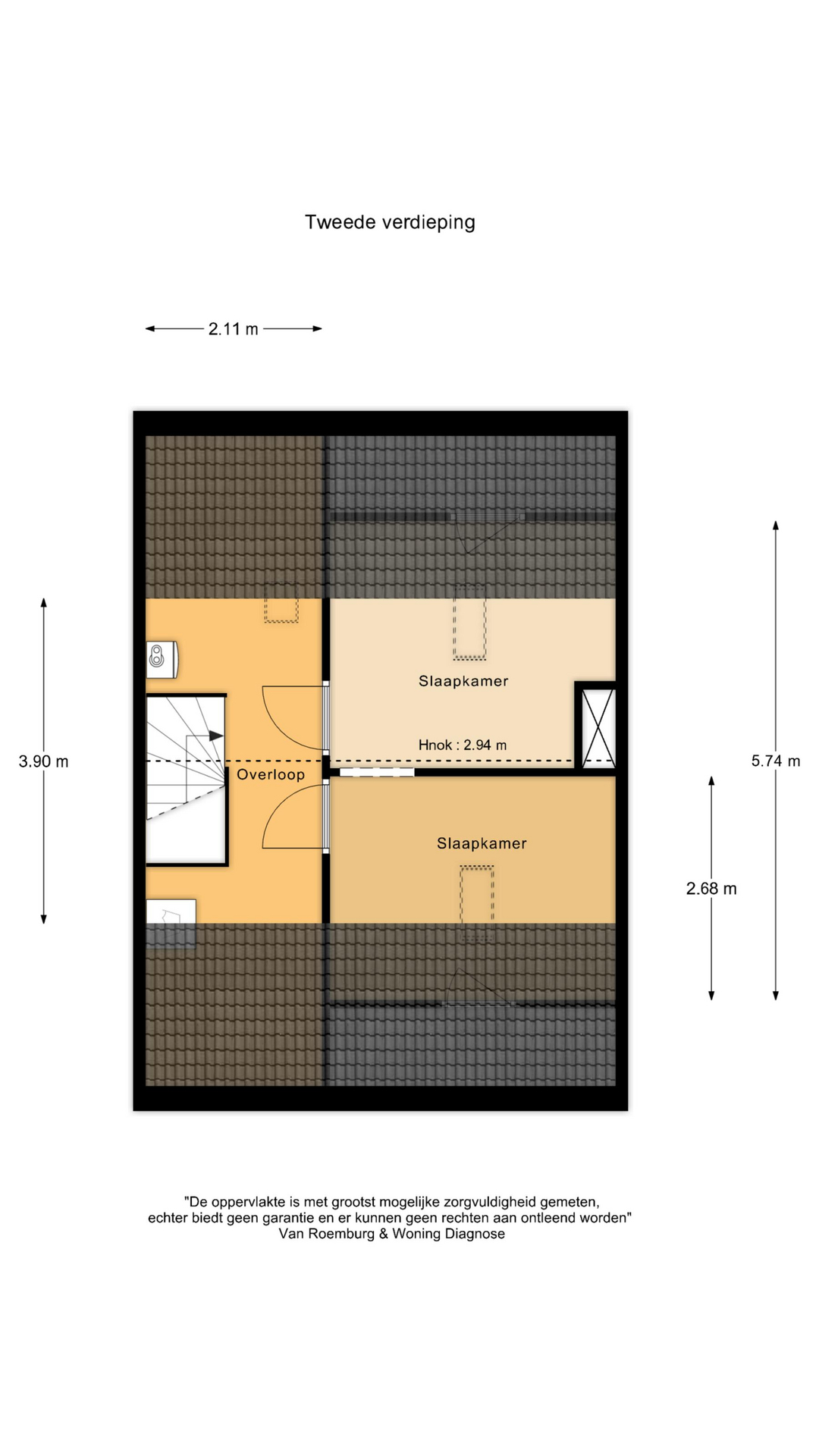 Via de vaste trap bereik je de 2e verdieping. Hier bevindt zich een ruime overloop met witgoedaansluitingen en waar ook de cv-installatie is geplaatst. Vanaf de overloop kom je in de 4e en 5e slaapkamer. Deze zijn beiden voorzien van een dakraam. Achter de knieschotten bevindt zich extra bergruimte, ideaal voor het netjes opbergen van spullen.