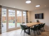 Deze woning is na aankoop door de huidige eigenaren enkele jaren geleden geheel in stijl met eersteklas materialen gerenoveerd en uitgebouwd. Op de begane grond vindt u de entree/hal met moderne tochtdeur, woonkamer in een L-vorm met aansluitend de uitgebouwde zeer fraaie open keuken met alle denkbare apparatuur en openslaande deuren naar de tuin. De eerste verdieping is eveneens uitgebouwd en beschikt nu over een overloop, 3 slaapkamers, waarbij de ronduit riante master-bedroom met aangrenzend dakterras over veel daglicht beschikt en een moderne badkamer met toilet, douche en wastafel. Op de tweede verdieping is een overloop met witgoedaansluitingen en CV opstelling gelegen. Tevens is hier de 4e slaapkamer te vinden.