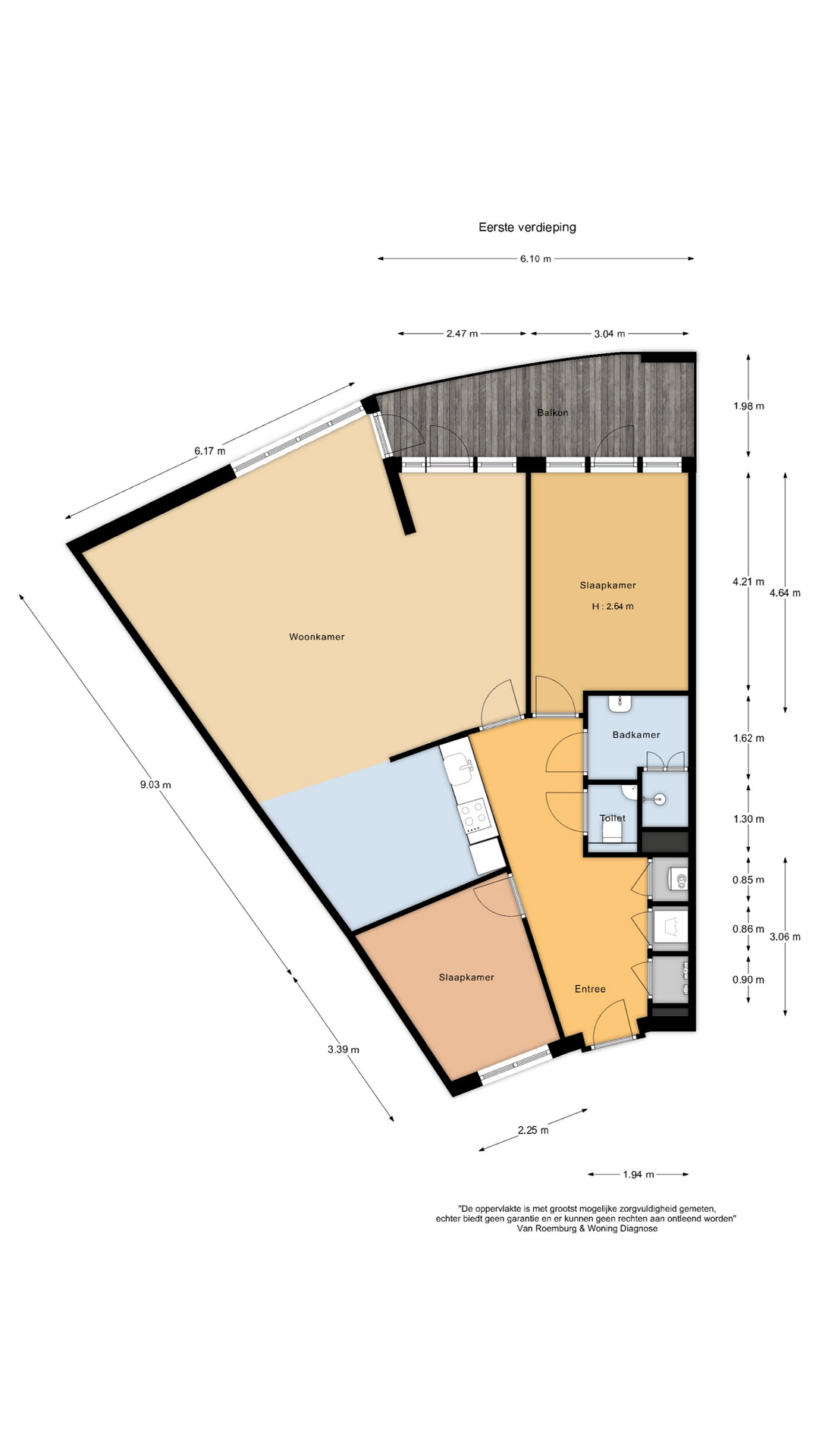 Indeling: Entree/hal met meterkast, wasmachine en droger ruimte, toilet, cv-ruimte, 2 slaapkamers, ruime woonkamer (39 m2) met een moderne open keuken (10 m2), een loggia op het oosten van 10 m2, badkamer met inloopdouche en wastafelmeubel met wastafel.