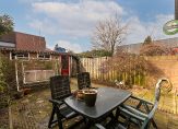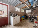 Vanuit de keuken is de toegang tot de zonnige tuin (zuidwesten) met een zonnescherm aan de achtergevel. Achterin bevindt zich een losse stenen berging met achterom waar genoeg ruimte is voor het opbergen van (tuin)spullen en fietsen.