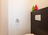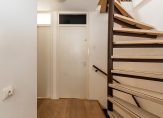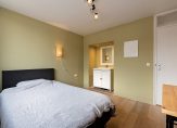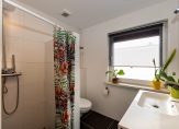 Via de dichte trap in de hal komen we uit op de overloop die toegang biedt tot de badkamer, 3 slaapkamers en een wasruimte. De nette badkamer beschikt over een inloopdouche, wastafelmeubel, wandcloset en vloerverwarming. De wanden van de slaapkamers zijn licht afgewerkt en op de vloer ligt een eveneens een lichte laminaatvloer. Twee slaapkamers beschikken over een eigen wastafelmeubel. In de voormalige badkamer is een wasruimte gemaakt.