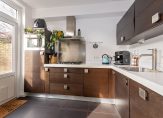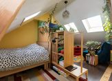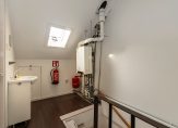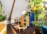 Tot slot bereik je via een vaste trap de zolderverdieping. Hier bevindt zich een ruime voorzolder met dakraam, wastafel, CV-ketel (Intergas 2008) en waar ook genoeg plek is voor het opbergen van spullen. Eveneens is hier een ruime en lichte 4e slaapkamer gecreëerd met maar liefst 3 dakramen en een pantryblok met koelkast, water en kookplaat.