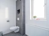Op de eerste verdieping vind je naast de luxe badkamer met dubbele douche, toilet en wastafelmeubel, vier royale slaapkamers. Ook hier is vloerverwarming aanwezig in de badkamer.