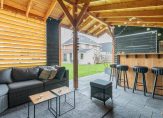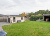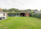 De tuin is werkelijk een oase van ruimte: een groot grasveld, een houten berging en een zwembad maken het plaatje compleet. De fraaie overkapping met bar en houtkachel (ter overname) nodigt uit voor gezellige avonden. Zie je jezelf hier al genieten in de zomer?