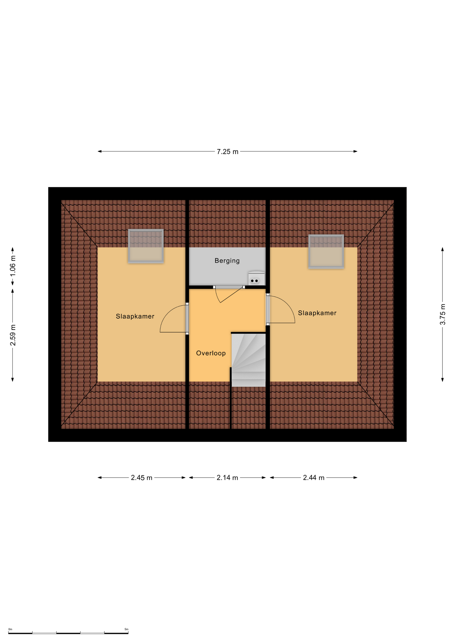 Op de tweede verdieping bevinden zich twee ruime slaapkamers en een grote berging, waar tevens de CV-installatie is geplaatst.