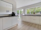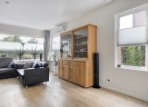 Entree met tochtportaal, hal met trapopgang, modern toilet en toegang tot de lichte woonkamer en een Dik Geurts inbouw houtkachel. De woonkamer biedt een sfeervolle zitruimte met airco, houtkachel en via de ensuite deuren direct verbinding naar de eetkamer. Vanuit de eetkamer kom je in de open keuken. De aangebouwde keuken is luxe en voorzien van allerlei apparatuur w.o. Quooker met kokend- en koud bruisend water, 2 Siemens inbouw combi magnetrons, een warmhoudlade, stahoogte inbouwkoelkast en -vriezer, inductie kookplaat met onderafzuiging incl. plasmafilter en 2 apothekerskasten. Vanuit de eetkamer loop je via de schuifpui zo de achtertuin in.