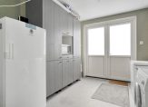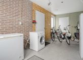 De aangebouwde bijkeuken is geïsoleerd en heeft een binnendeur naar de keuken en een dubbele deur naar de oprit alsmede een deur naar de tuin. Aansluitend ligt de oude garage en deze wordt nu gebruikt als schuur/opslagruimte.