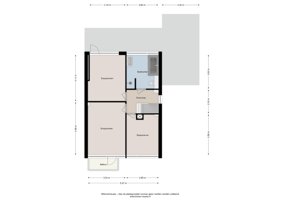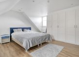 Overloop met toegang tot drie ruime slaapkamers, waarvan de grootste is voorzien van een balkon. Eén van de slaapkamers heeft een wastafelmeubel. De moderne badkamer beschikt over een inloopdouche, ligbad, hangend toilet, vloerverwarming en luxe afwerking. Tevens zijn hier 2 infrarood panelen geplaatst (waarvan één boven de douche met draadloze afstandsbediening inclusief tijdschakelaar).