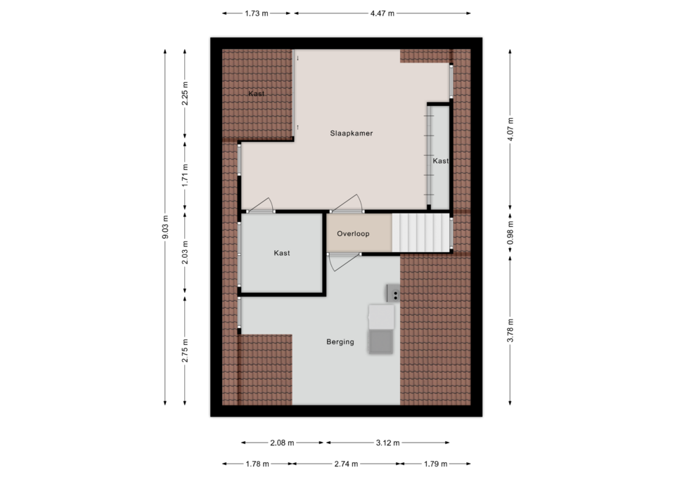 Vaste trap naar de zolderverdieping met vierde slaapkamer en mogelijkheid tot het realiseren van een 2e badkamer (alle aansluitingen zijn reeds aanwezig). Ruime zolder met bergruimte, witgoedopstelling, daglicht en technische ruimte.