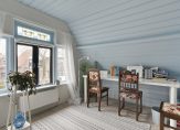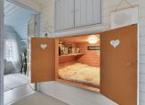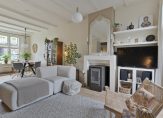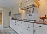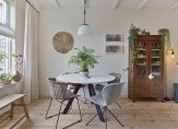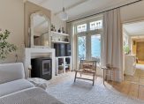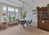 De mooie voorgevel verraadt al dat het geen ‘gewoon” huis is. Meteen al als je binnenkomt voel je de fijne sfeer. Dit komt mede door de karakteristieke elementen. Zoals het glas in lood, een balkenplafond, een schouw, mooie paneeldeuren en een lichte houten vloer met brede planken.