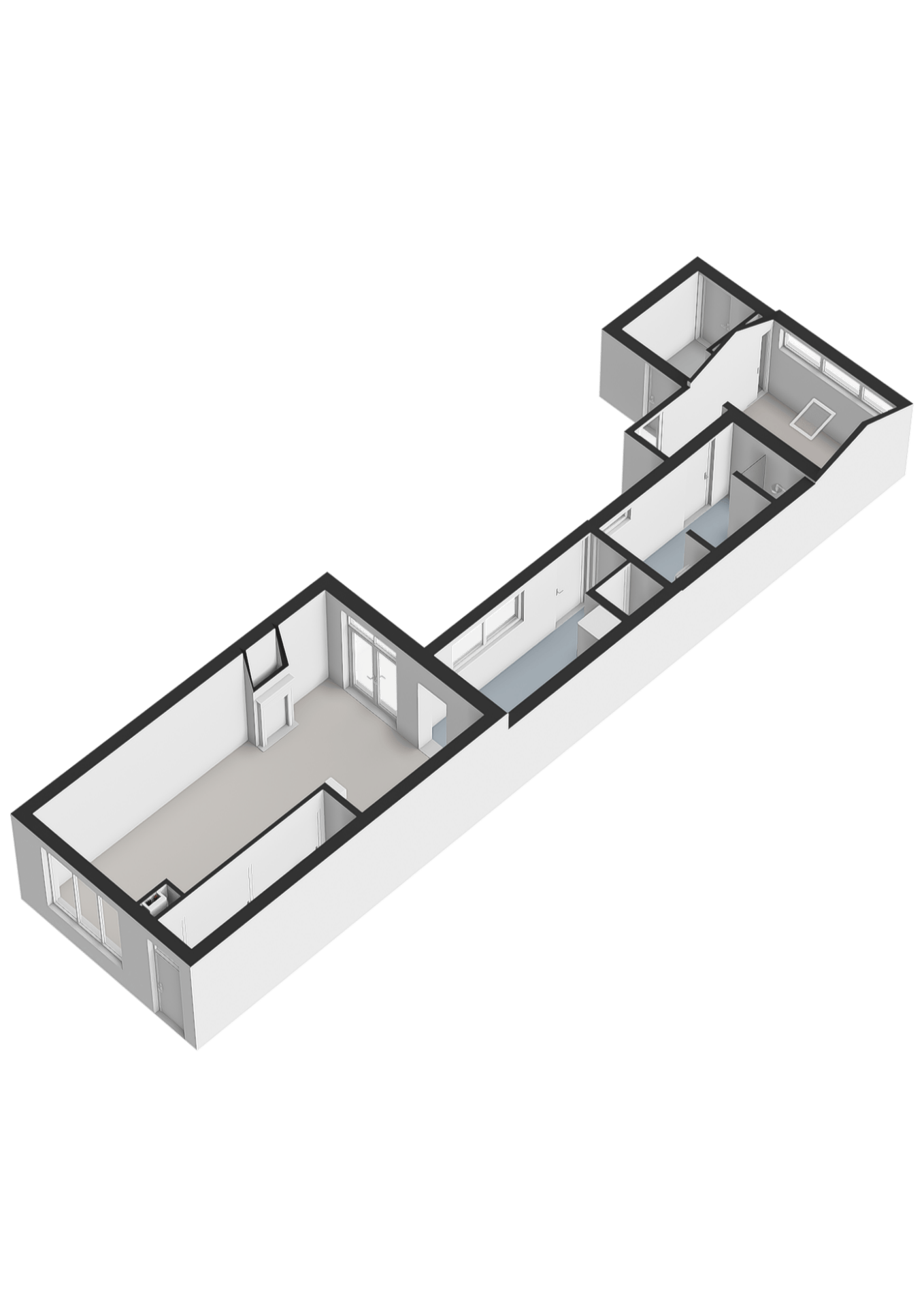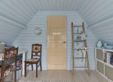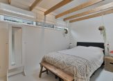Achter de badkamer bevindt zich de in 2023 gerealiseerde slaapkamer, die ook gebruikt kan worden als hobbykamer of werkkamer. Deze kamer heeft een diepe kast en veel ramen.