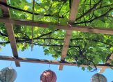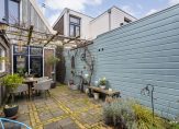 De woonkamer is verrassend ruim en heeft een palletkachel, een diepe vaste kast en openslaande tuindeuren, die toegang geven tot de zonnige -op het zuiden gelegen- tuin. Waar een pergola, begroeid met een druif, in warme zomermaanden heerlijke schaduw geeft.