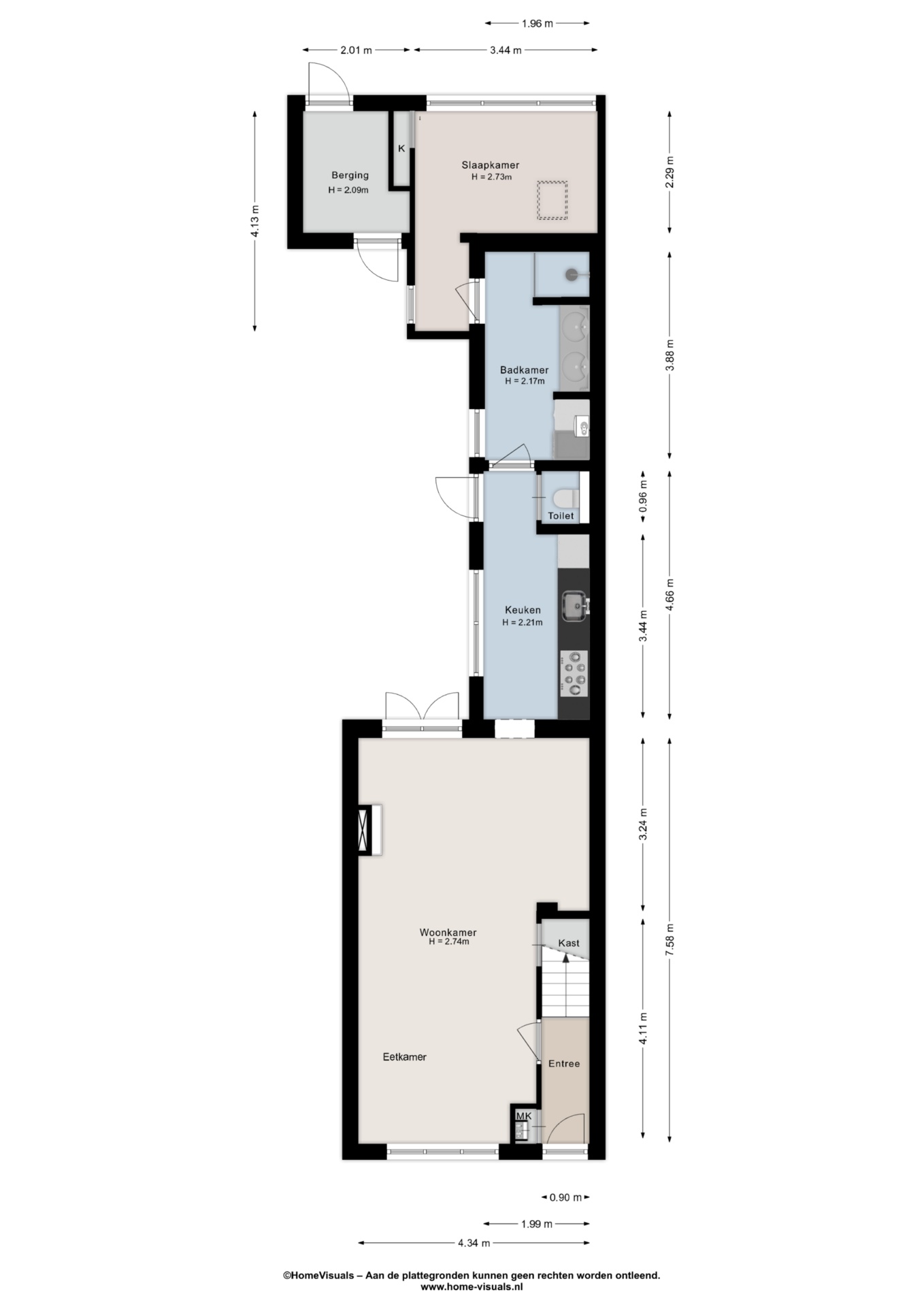 In de gang bevinden zich de meterkast en de trap naar boven.