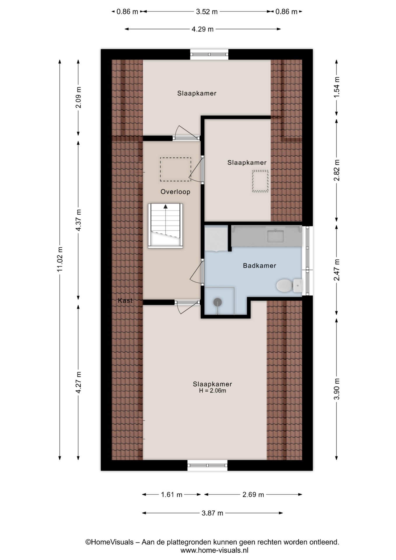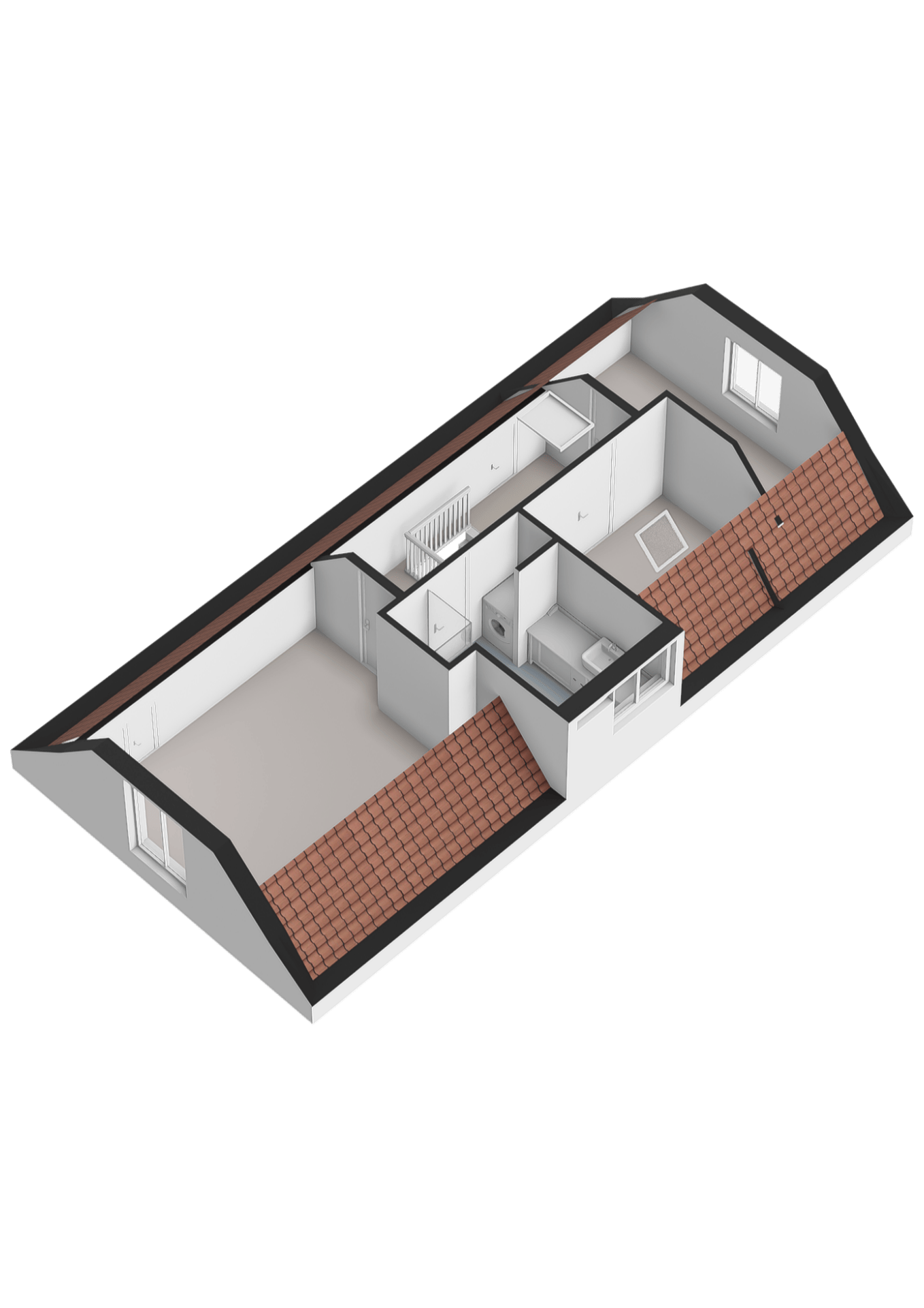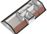 Via de overloop zijn drie slaapkamers bereikbaar, evenals de badkamer. De badkamer is voorzien van een dakkapel, een douchecabine, een wastafelmeubel en een toilet.
