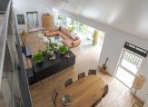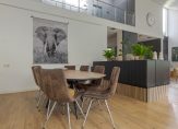 Zodra je binnenstapt, word je omarmd door licht, ruimte en sfeer. De speelse living met niveauverschillen, hoekjes en een prachtige vide maakt indruk door zijn openheid én warmte. De serre vormt een heerlijke plek om te genieten van de ochtendzon, terwijl de grote raampartijen een panoramisch uitzicht bieden op de tuin.