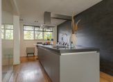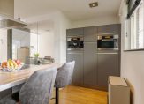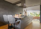 De designkeuken met kookeiland is voorzien van hoogwaardige Miele-inbouwapparatuur en vormt het hart van het huis. Aangrenzend vind je de praktische bijkeuken met extra werkblad en witgoedaansluitingen.