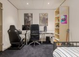 Verder biedt de begane grond een royale werk- of slaapkamer en een volwaardige badkamer met whirlpool, inloopdouche, dubbele wastafel en toilet, perfect voor wie levensloopbestendig wil wonen of gewoon houdt van luxe gelijkvloers gemak.