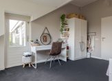 De vide zorgt voor een luchtige, open verbinding tussen de verdiepingen en vormt een sfeervolle werk- of leesplek. De masterbedroom beschikt over een eigen inloopkast en een privébadkamer met douche, wastafel en toilet. Daarnaast zijn er twee comfortabele (kinder)slaapkamers, beide met toegang tot het balkon, een fijne plek om in alle rust te genieten van het uitzicht op het groen.