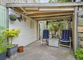 De achtertuin ligt op het noordoosten en is circa 22 m² groot. Hier kun je in alle rust buiten zitten. In de tuin staat een berging, handig voor tuingereedschap. Via het pad tussen de woningen (recht van overpad via de steeg van de buren) kun je achterom.