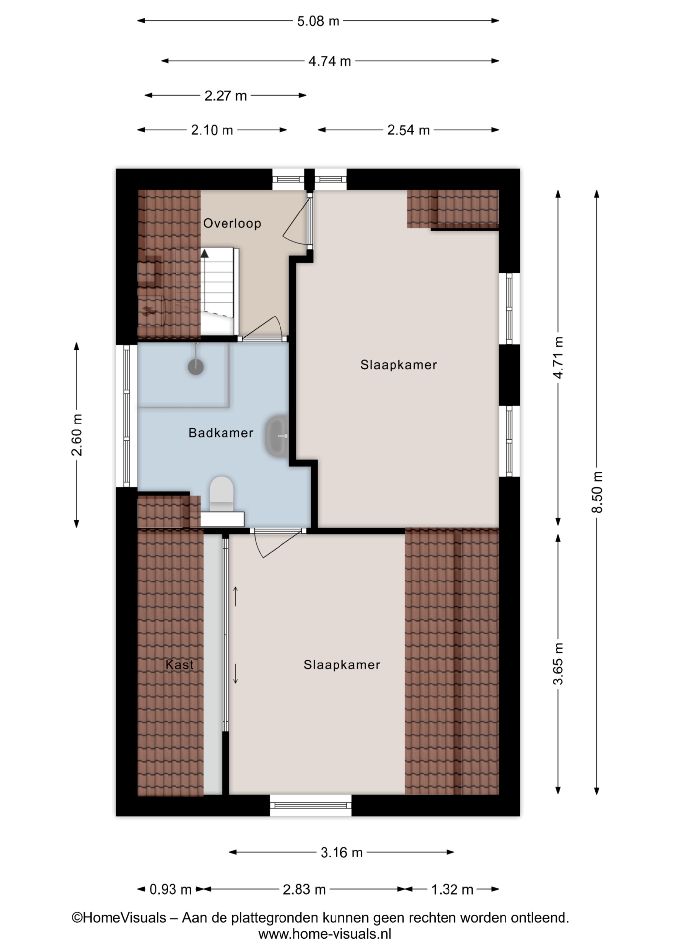 Op de verdieping vind je een overloop, twee slaapkamers en een nette badkamer, die is uitgerust met een douche, wastafelmeubel en toilet. Ook hier vind je natuurlijke ventilatie en HR-beglazing voor comfort én energiebesparing.