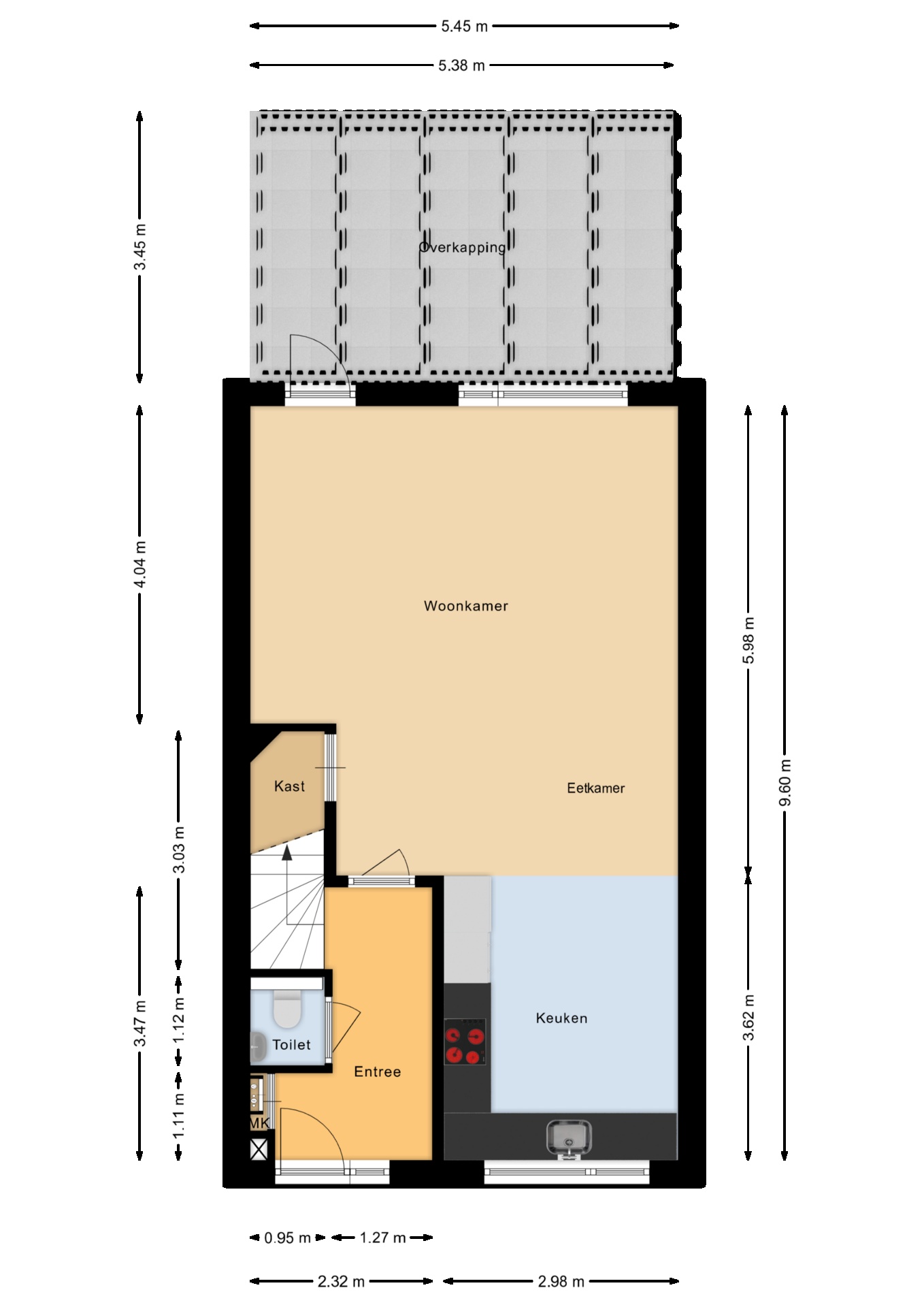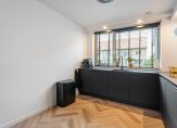 Je komt binnen in de hal met toilet en trapopgang. De lichte woonkamer kijkt uit op de zonnige achtertuin. De halfopen keuken aan de voorzijde is in 2022 vernieuwd en voorzien van moderne inbouwapparatuur. Dankzij de vloerverwarming is het hier het hele jaar door comfortabel.