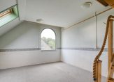 Vaste trap naar de zolder met twee slaapkamers, beide met dakramen. Eén kamer heeft een gezellige slaapzolder en de andere biedt extra bergruimte en de stookruimte.