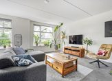 * Ruime woonkamer met vrij uitzicht op een groene laan