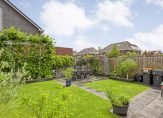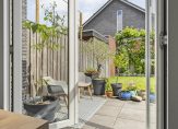 De achtertuin ligt op het noordoosten en is via de keuken en bijkeuken bereikbaar. Aan de voorzijde biedt de woning vrij uitzicht en volop privacy dankzij de volwassen bomenrij.