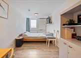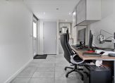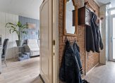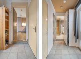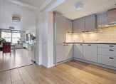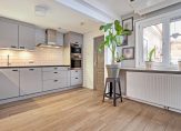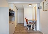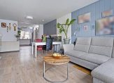 Binnenkomst via de nieuwe voordeur (2025) in een nette hal met vernieuwde meterkast en brandmeldsysteem. De lichte woonkamer sluit aan op de moderne open keuken (2021) met vloerverwarming, airco en complete inbouwapparatuur.