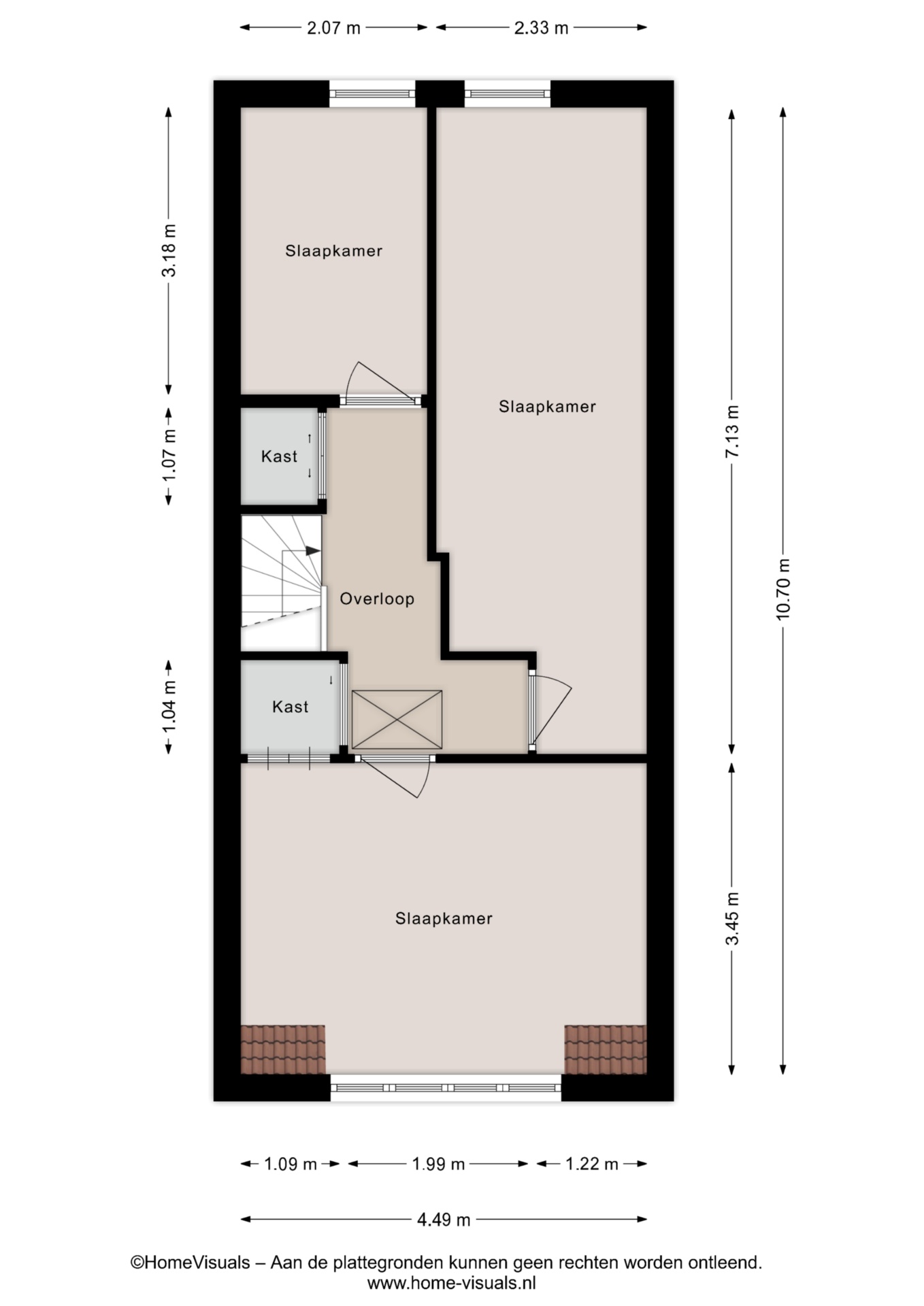 Twee ruime slaapkamers en een derde kleinere kamer. Alle voorzien van rolluiken en twee met eigen airco.