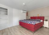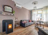 Binnen geniet je van een lichte woonkamer met een pelletkachel, een moderne keuken met inbouwapparatuur en openslaande tuindeuren naar de zonnige achtertuin. Dankzij vloerverwarming, 10 zonnepanelen (2022 & 2024) en twee nieuwe airco’s woon je niet alleen comfortabel, maar ook energiezuinig.