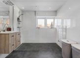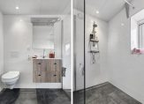 Op de eerste verdieping leidt de overloop naar twee ruime slaapkamers. De comfortabele badkamer is uitgerust met een wastafelmeubel, een toilet en een inloopdouche.