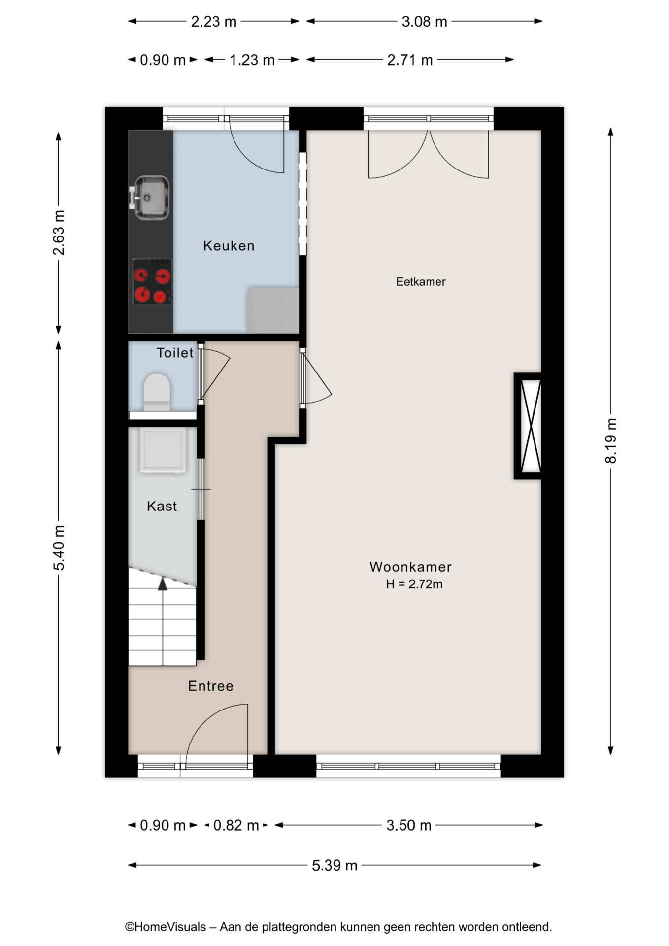 Op de begane grond bevindt zich de entree met de trapopgang en een modern toilet. De sfeervolle woonkamer heeft een pvc vloer, een pelletkachel en openslaande tuindeuren naar de achtertuin. De nette keuken is voorzien van inbouwapparatuur, waaronder een 4-pits inductiekookplaat, een koelkast, een vriezer en een vaatwasser.