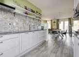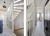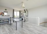 De overloop geeft toegang tot drie slaapkamers, allen met een nette laminaat vloer. De moderne badkamer heeft een ligbad/douchecombinatie, een wastafel en een tweede toilet.