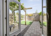 * Openslaande tuindeuren naar een gezellig terras met pergola