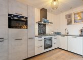 Entree/hal met toilet en trapopgang. Lichte woonkamer van circa 25 m² met een prettige sfeer. Aansluitend de keuken, vernieuwd in 2021 en voorzien van inbouwapparatuur. Vanuit de keuken toegang tot de praktische bijkeuken en de achtertuin.