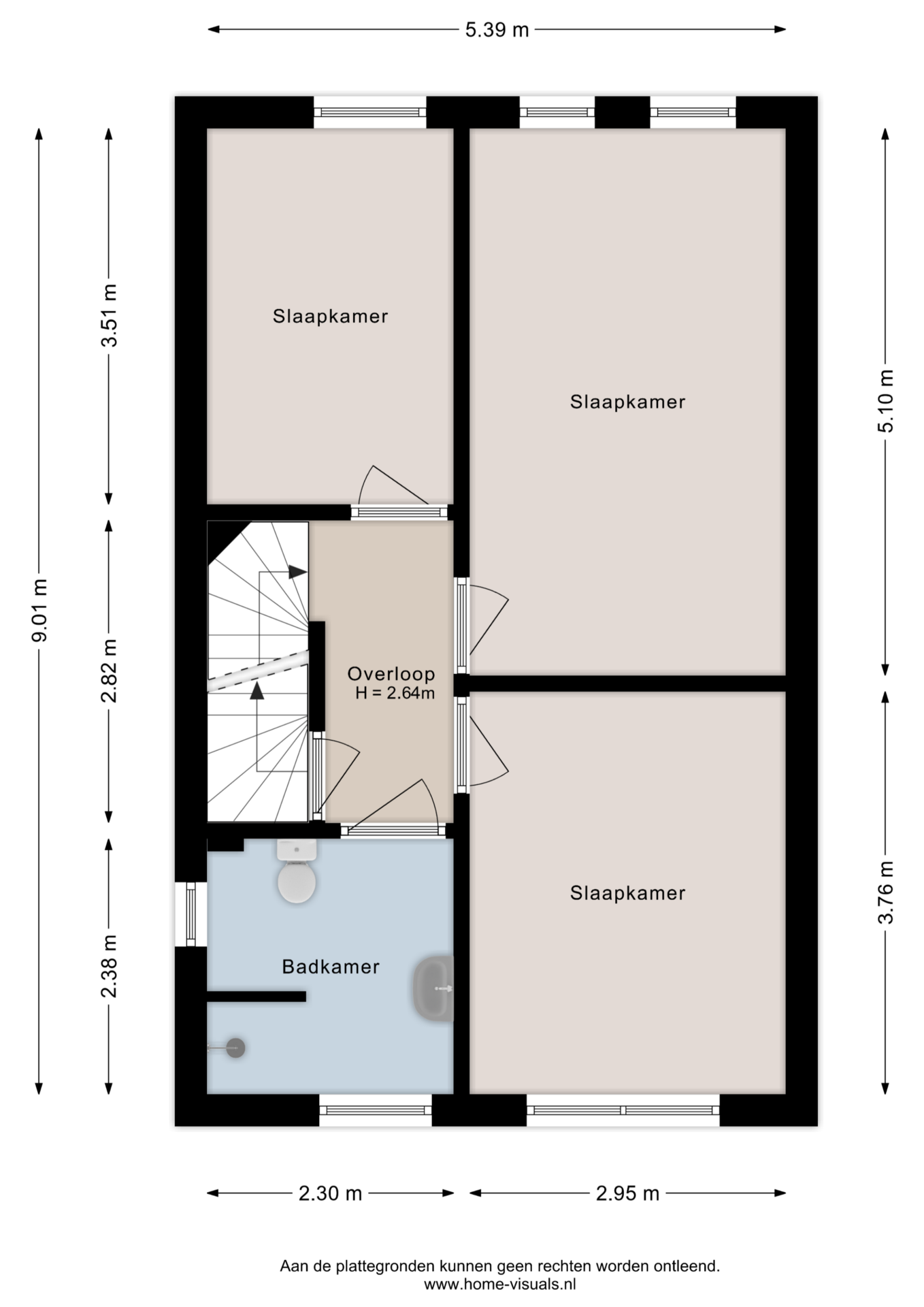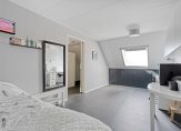 De overloop biedt toegang tot twee ruime slaapkamers en een kleinere welke in gebruik is als walk-in closet. Alle slaapkamers hebben een raampartij en is voorzien van vloerverwarming met een vinylvloerbedekking. De badkamer is netjes en heeft een inloopdouche, 2e toilet, en een wastafel.