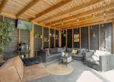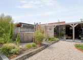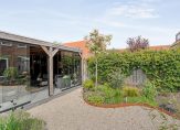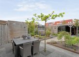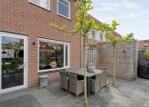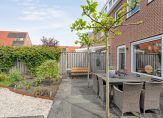 De woning heeft een riante achtertuin die bijzonder leuk en speels is aangelegd met verschillende terrassen. Er is een ruime luxe overkapping waardoor je ook op de minder mooie dagen nog steeds lekker buiten kunt zitten. De overkapping is voorzien van afsluitbare glasdeuren, heeft een aparte berging en een toegangsdeur naar het achterliggende pleintje.