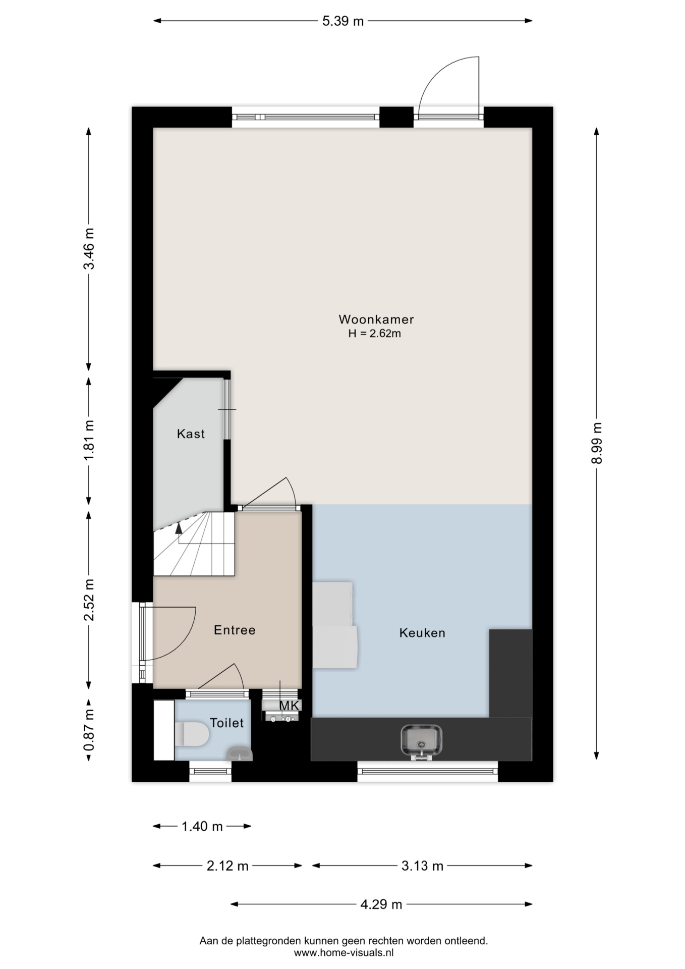 Bij binnenkomst in de hal vind je de meterkast, het toilet en de trapopgang. De lichte woonkamer van circa 28 m² heeft grote raampartijen, toegang tot de trapkast, en een openslaande deur naar de tuin. De open keuken is aan de voorzijde gelegen (circa 11 m²) en is uitgerust met diverse inbouwapparatuur zoals een 5-pits kookplaat (2024), afzuigkap, oven, vaatwasser en handige kasten voor extra opbergruimte. De gehele begane grond is afgewerkt met plavuizen en heeft vloerverwarming.