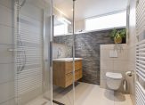 De badkamer is in 2024 vernieuwd en uitgevoerd in een nette, eigentijdse stijl. Deze is voorzien van een comfortabele inloopdouche, een dubbele wastafel en een toilet, waardoor het hier aan niets ontbreekt voor dagelijks comfort.