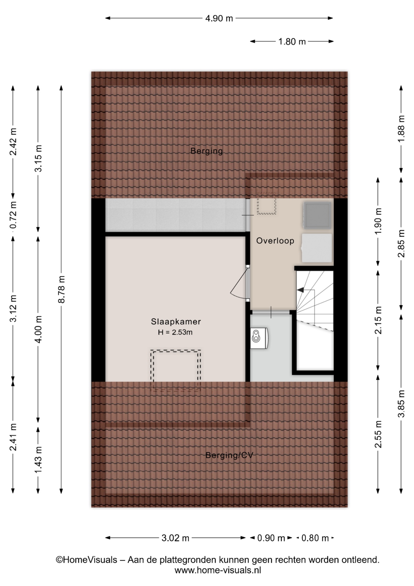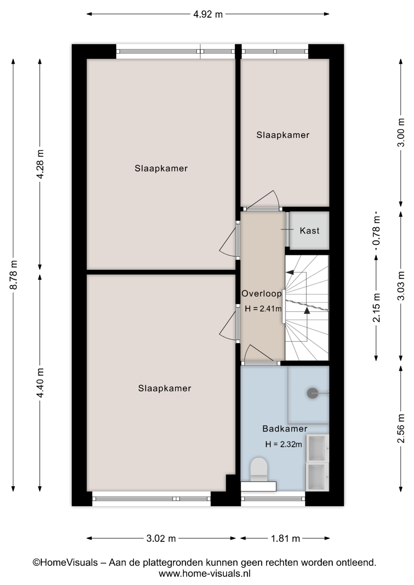 Via de overloop bereik je drie slaapkamers, allemaal prettig van formaat. De ruimtes zijn licht, praktisch ingedeeld en geschikt als slaap-, werk- of kinderkamer.