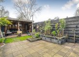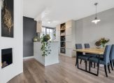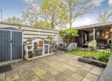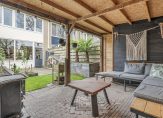 De tuingerichte woonkamer is ruim en licht, met een sfeervolle waterdamp-haard als middelpunt. Vanuit hier stap je zó de fraai aangelegde achtertuin in. Door de ligging op het noordwesten geniet je ’s middags en ’s avonds van de zon. Achterin de tuin vind je een gezellige overkapping, een heerlijke plek om het hele jaar door buiten te zitten.