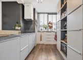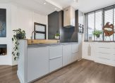 Je komt binnen in de hal met trapopgang, en een modern hangtoilet. De keuken aan de voorzijde is in 2015 vernieuwd en voorzien van een kookeiland, 4-pits inductiekookplaat met afzuigkap, oven, vaatwasser en koelkast. Ideaal voor wie van koken houdt!