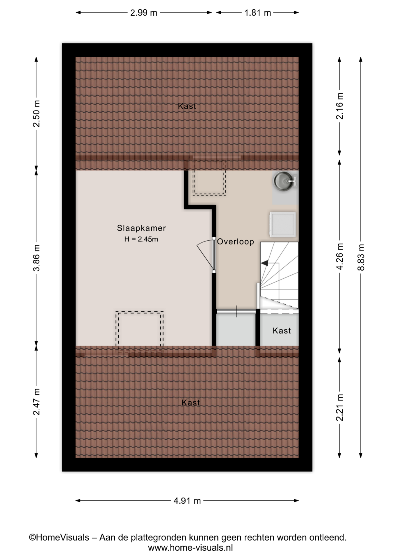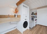 De vaste trap brengt je naar de zolderverdieping: een volwaardige extra verdieping met een grote vierde slaapkamer voorzien van een dakraam, een praktische wasruimte met de witgoed aansluitingen en diverse opbergmogelijkheden.