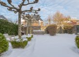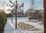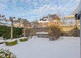 De verzorgde achtertuin met dakplatanen en leilindes ligt op het noorden en is royaal opgezet. Er is voldoende ruimte om meerdere zitplekken te creëren, waarbij er altijd wel een plek in de zon of schaduw te vinden is om te genieten van het buitenleven. Langs de woning loopt een pad (achterom) dat zorgt voor een praktische ontsluiting van de tuin. Daarnaast beschikt de woning over een voortuin. De vrijstaande houten berging biedt praktische opslag voor fietsen en tuinspullen.